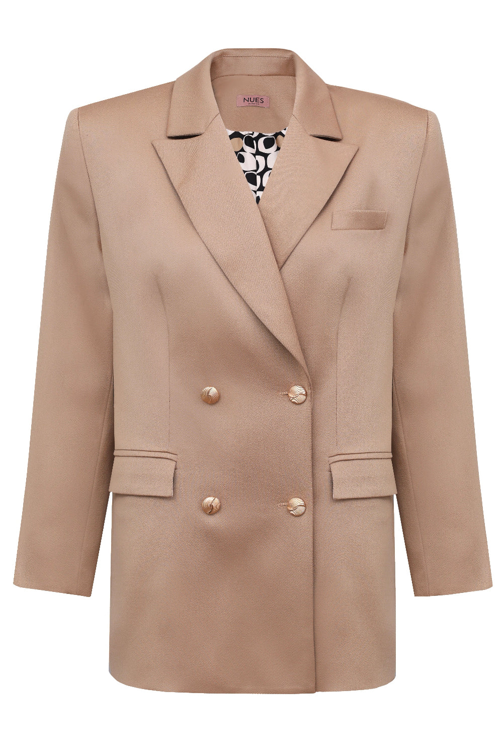 This unique premium women's blazer is locally made, in a limited edition, in the spirit of responsible fashion. This beige oversized blazer works well as both an elegant work jacket and a modern casual jacket with jeans or a dress. This limited collection from the Polish brand NUES is contemporary luxury, combining classic and modern styles.