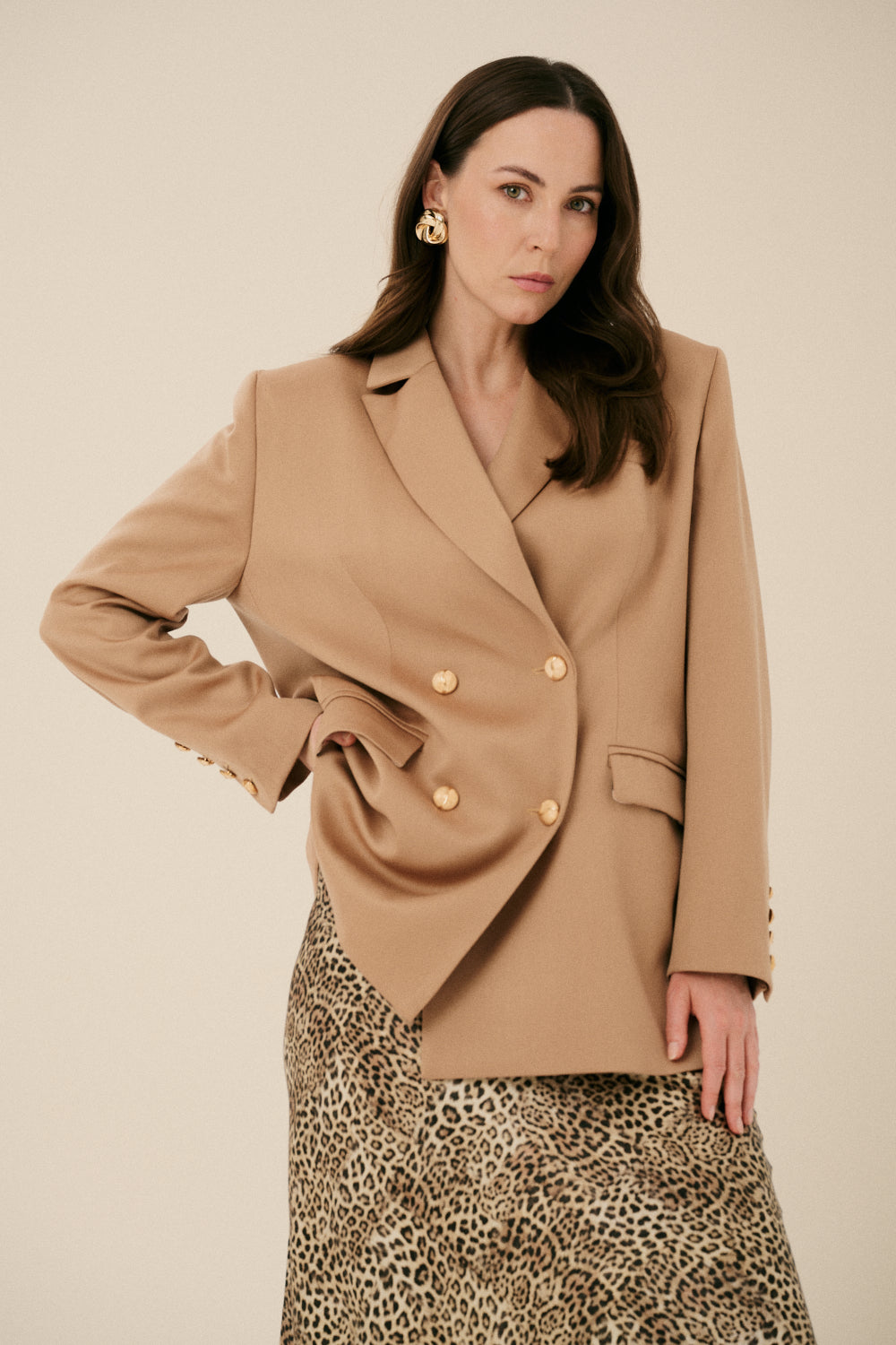 'LUMIÈRE' BEIGE WOOL AND CASHMERE JACKET WITH GOLD BUTTONS